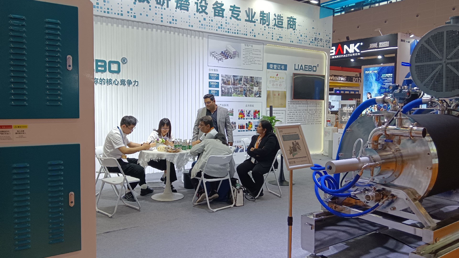 展會期間,勵岸寶科技在4號館A15展位展示了砂磨機在紡織染料、功能性顏料等領(lǐng)域的實際應(yīng)用案例,并通過現(xiàn)場演示與技術(shù)講解,向客戶傳遞“高效、環(huán)保、智能”的產(chǎn)品理念。公司團(tuán)隊與參會嘉賓深入探討行業(yè)趨勢,共謀合作新機遇。