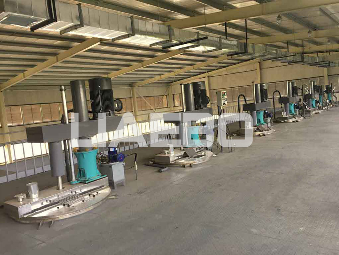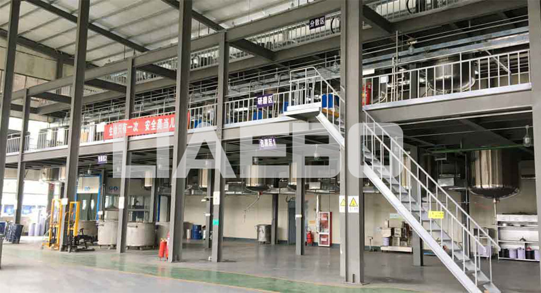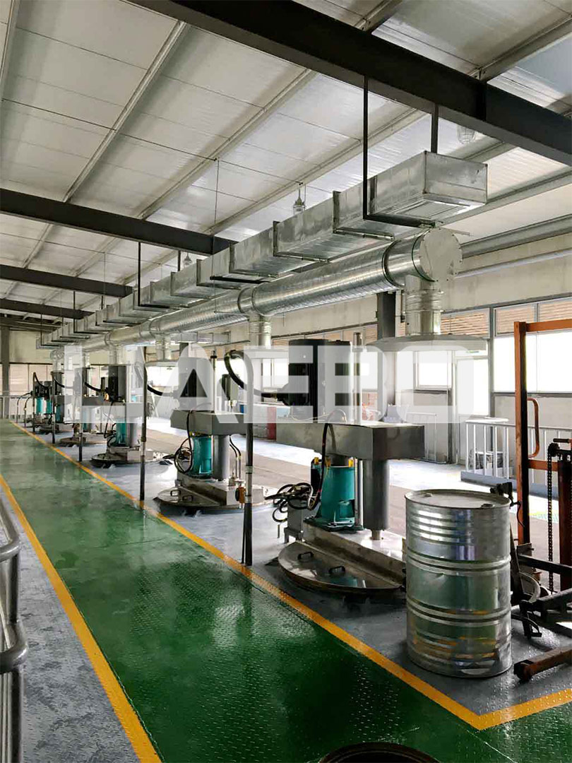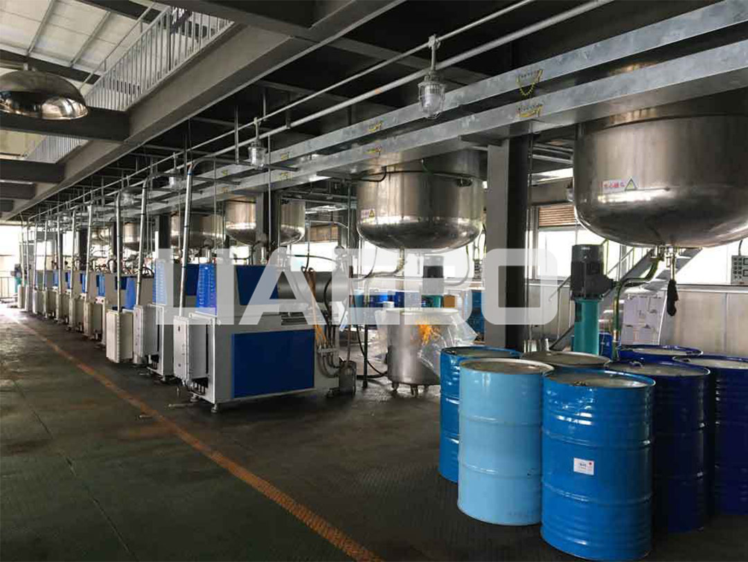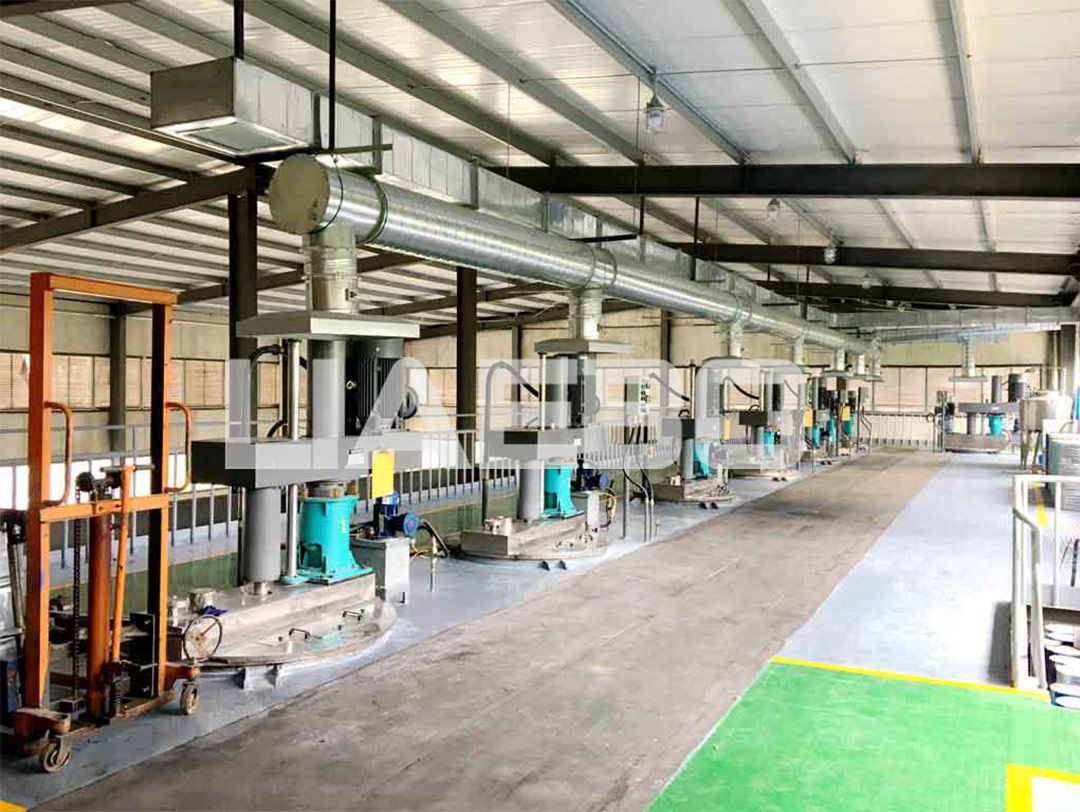 三層預(yù)混,二層研磨、調(diào)漆;一層自動包裝。