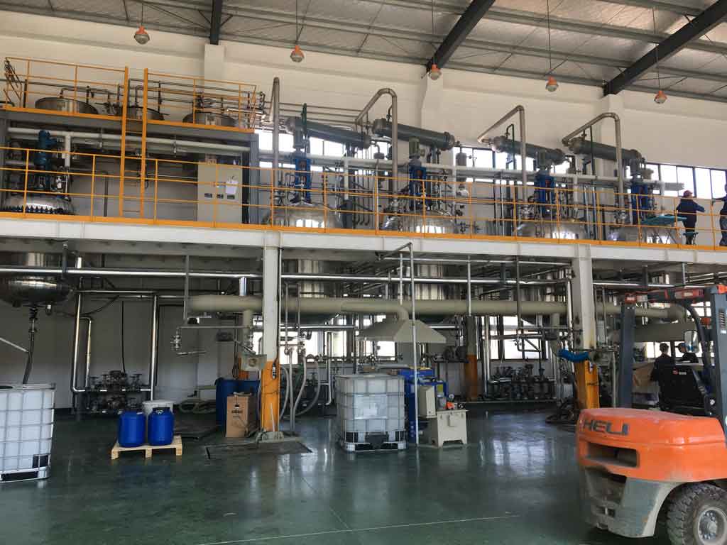 樹脂生產(chǎn)線,主要解決配料、滴加、升溫、降溫、攪拌等過有問題;該生產(chǎn)線5臺5000L高速攪拌反應(yīng)釜;儲罐區(qū)(立式儲罐)自動配料,蒸汽加熱、冷水降溫、自動溫控系統(tǒng),真空上料、真空脫水、滴加釜控制流速、緩慢滴加,冷凝系統(tǒng)、油水分離、液料回收,廢水凈廢水處理后可再循環(huán)使用,流量計控制加料速度。