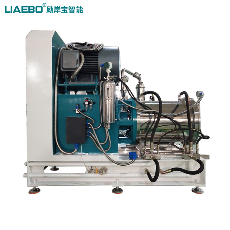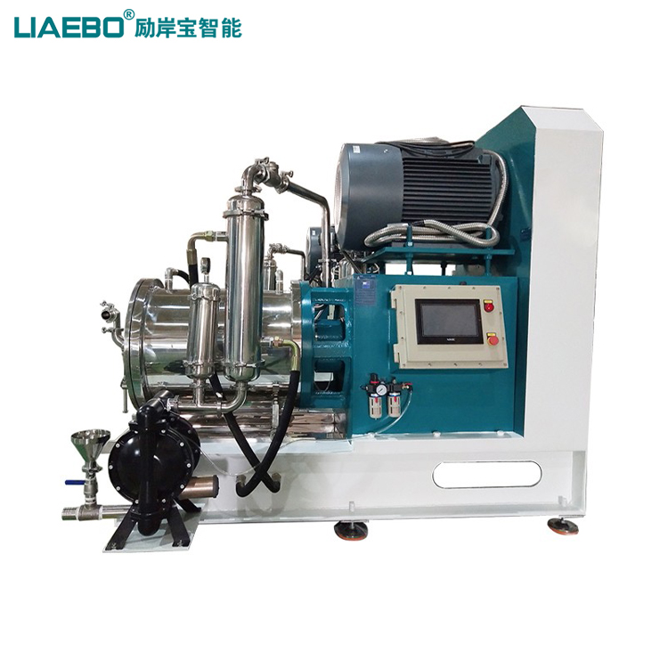 采用循環(huán)研磨工藝,環(huán)保節(jié)能、勞動強度小。配制好的原始漿料,經(jīng)過第一遍粗略研磨后,泵入循環(huán)攪拌罐,經(jīng)底部泵輸送進入納米研磨機;一邊經(jīng)過研磨后送入循環(huán)罐,與未曾研磨過的物料通過攪拌機快速混亂,一邊又通過底部泵入砂磨機,周而復始直到達成研磨要求。一般而言,罐的容積是砂磨機流量的1/4。采用循環(huán)研磨工藝或多次研磨工藝能使產(chǎn)能提高,產(chǎn)品顆粒級配分布得以優(yōu)化。稍加一些控制功能,可保證產(chǎn)品的可復制性及節(jié)省成本。大尺寸轉(zhuǎn)子加上筒狀縫隙式分離器,使該型設備可使用不同材質(zhì)小顆粒珠子。對于防金屬污染的物料,可采用陶瓷(碳氮化硅,氧化鋯)及聚氨酯結(jié)構(gòu)材料。