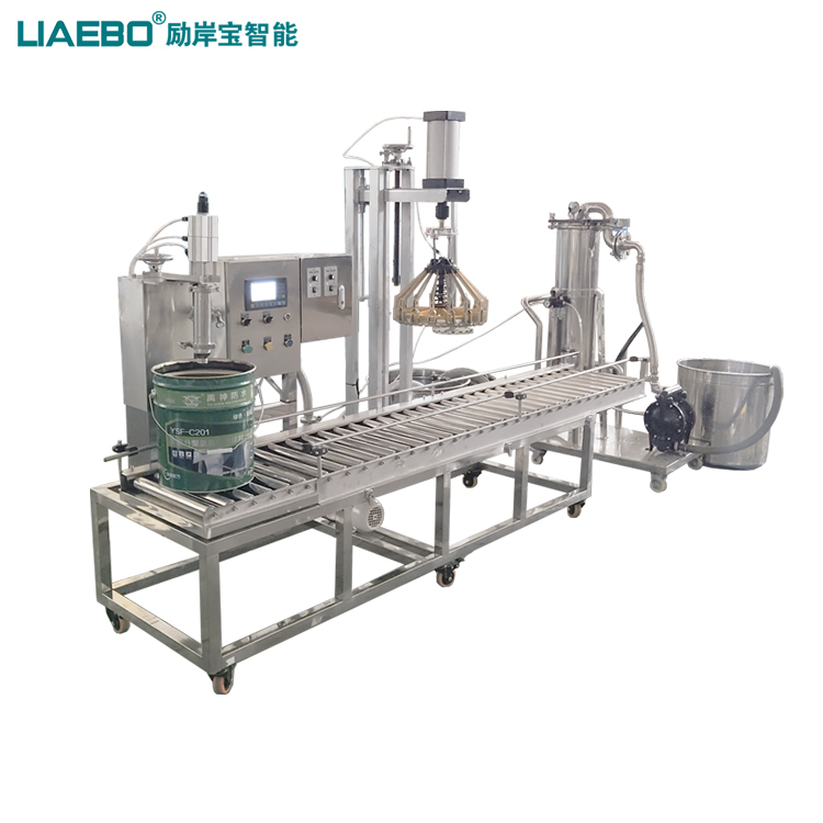 液體灌裝機(jī)是以重量方式精確地將大量的散裝液體物料分裝到各種容器、鐵桶或塑料桶中,用于 4L~30L 桶自動(dòng)定量灌裝。廣泛應(yīng)用于化工、農(nóng)藥等與液體狀物料相關(guān)的行業(yè),適用在涂料、油漆、油墨、膠粘劑、固化劑、樹脂、染料、清洗劑、機(jī)油、甘油、潤(rùn)滑油、食用油、香精、溶劑、助劑、食品添加劑、農(nóng)藥及其他危險(xiǎn)性化學(xué)產(chǎn)品等產(chǎn)品中。單頭半自動(dòng)灌裝機(jī)自動(dòng)化控制儀表接收稱重傳感器給出的重量信號(hào),單頭/大流量/小流量控制進(jìn)料閥,實(shí)現(xiàn)自動(dòng)灌裝的目的:并配有半自動(dòng)輸送輥道及壓蓋/夾蓋/裝置,完成物料灌裝與密封過(guò)程。主要用于馬口鐵桶、塑料桶的定量自動(dòng)灌裝,也適用于食品、制藥、化工等多種行業(yè)液體類物料的自動(dòng)定灌裝。