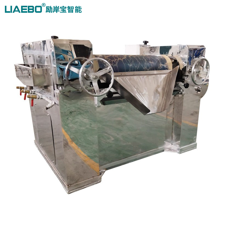 三輥研磨機(jī)主要用于各種油漆、油墨、顏料、塑料、食品等膏狀漿料之用,主要為油漆、油墨等高粘度物料的研磨分散之主要設(shè)備。該機(jī)通過(guò)機(jī)器水平方向排列的三根輥筒表面相互擠軋及不同的速度的摩擦而達(dá)到研磨作用,研磨物料一般只要研磨二次就可以達(dá)到要求,難研物料必須研磨多次,方能達(dá)到要求。工作時(shí)將快、慢輥調(diào)節(jié)到適當(dāng)位置,啟動(dòng)機(jī)器,然后將需研磨的漿料加入中輥與慢輥之間銅刀處,漿料經(jīng)過(guò)中、慢輥表面研磨后,由中輥帶給快輥,再由緊貼表面的出料刮刀予以刮下,通過(guò)裝有擋板的刀板,流入盛料筒,由此構(gòu)成整個(gè)研磨過(guò)程。