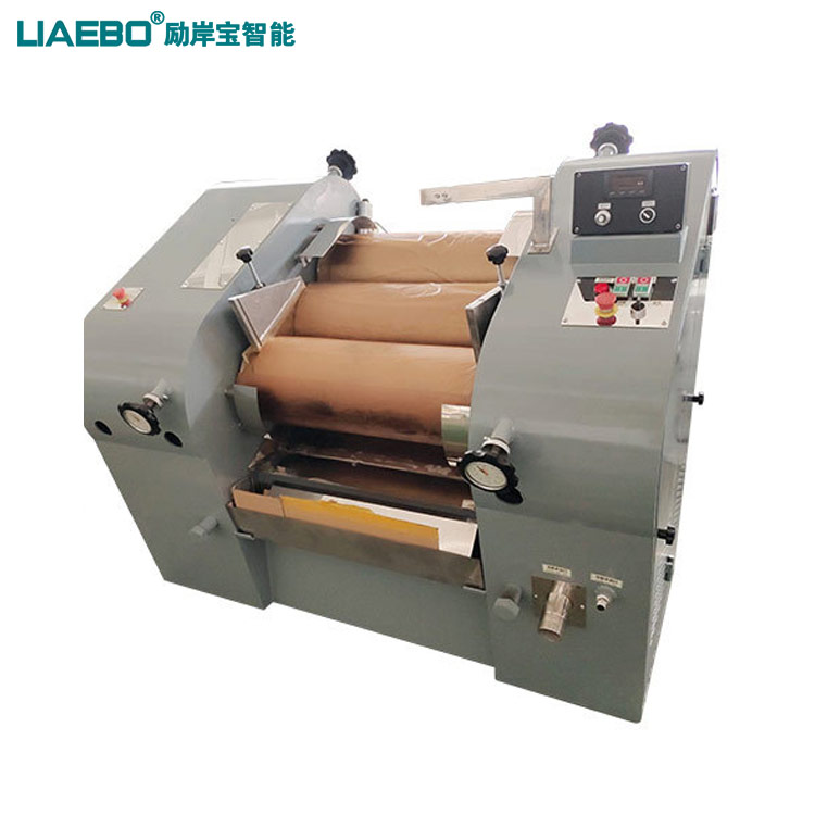 三輥研磨機(jī)主要用于各種油漆、油墨、顏料、塑料、食品等膏狀漿料之用,主要為油漆、油墨等高粘度物料的研磨分散之主要設(shè)備。該機(jī)通過機(jī)器水平方向排列的三根輥筒表面相互擠軋及不同的速度的摩擦而達(dá)到研磨作用,研磨物料一般只要研磨二次就可以達(dá)到要求,難研物料必須研磨多次,方能達(dá)到要求。工作時(shí)間快、慢輥調(diào)節(jié)到適當(dāng)位置,啟動(dòng)機(jī)器,然后將需要研磨的漿料加入中輥與慢輥之間銅刀處,漿料經(jīng)過中、慢輥表面擠軋后,由中輥帶給快輥,再由緊貼表面的出料刮刀予以刮下,通過裝有欄板的刀板,流入盛料筒,由此構(gòu)成整個(gè)研磨的過程。