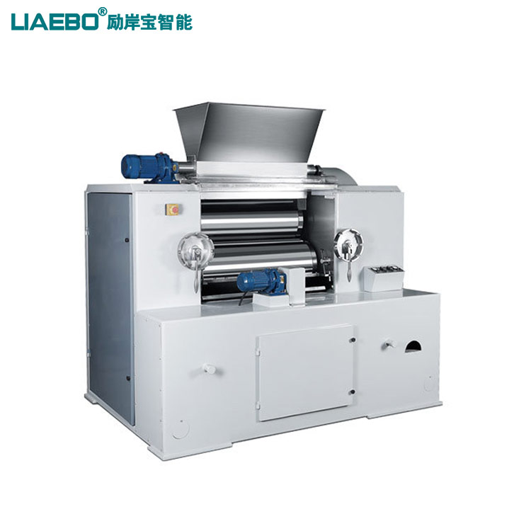 安裝形式從傳統(tǒng)輥筒排列形式改為不規(guī)則直立形。主要工作方式是物料從*上面慢輥進料,通過中慢輥進行第一次研磨,再進入快輥進行第二次研磨,物料即使從中慢輥掉料下去,也會自動進入中快輥進行二次研磨,保證產(chǎn)品的研磨次數(shù),而且出料是從*下面出料,大大降低了粉塵的產(chǎn)生。如客戶需要安裝輸送帶上料或出料也及為方便。該機可做成液壓型和手動型,是國內(nèi)外獨創(chuàng),在客戶使用中得到及高評價。